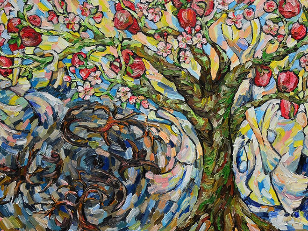 Reyhaneh Mozaffar's paintings show her reflective journey through life. Through her work she dives into her soul, digs into her emotions, and uncovers her thoughts. At the same time, she uses art as a universal language that goes beyond origin, race and language, allowing all humans to connect with one another through their spirits. She not only establishes connections with herself, but also with nature and all people across the globe through her paintings.
